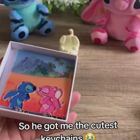 Stitch and angel keychain holder