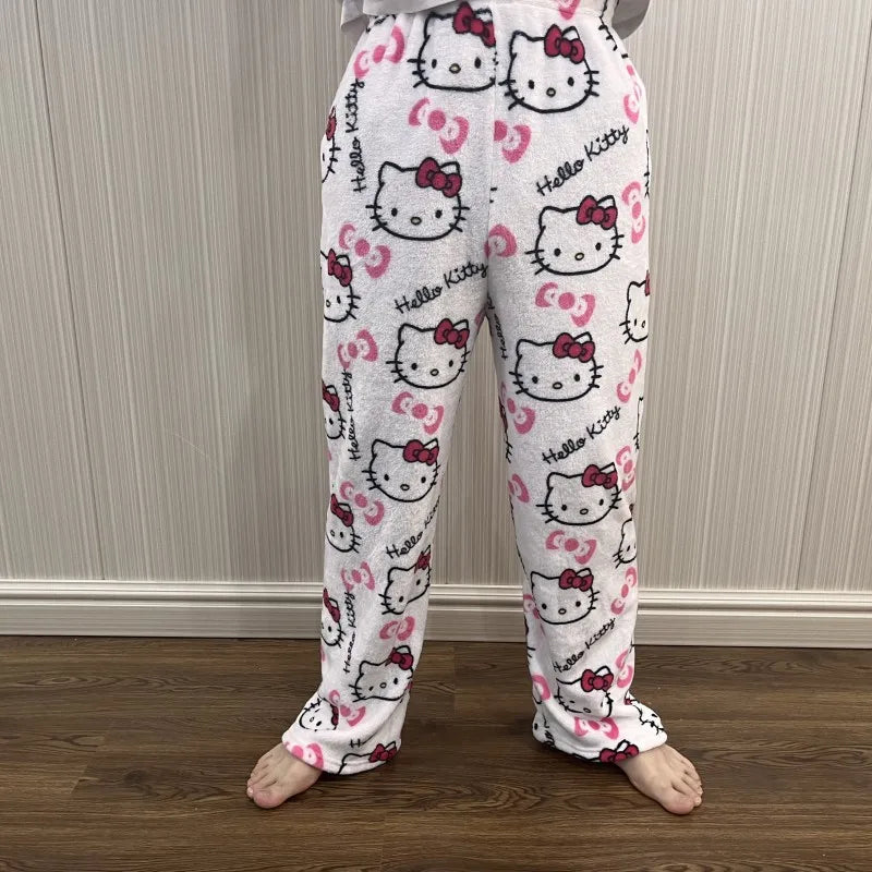 White hello kitty pajama pants (winter material)(خامة شتوية)